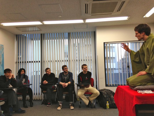 アメリカ人の初級日本語学習者に英語落語を披露。演目は「酢豆腐」と「寿限無」。「英語はスウェーデンでしか勉強したことがない」とおっしゃるヨハンさんですが、会場は爆笑の渦に!
