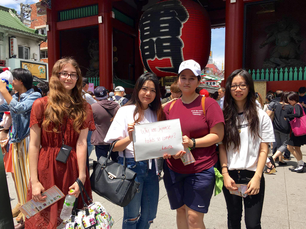 私たちは韓国の大学で1学期間勉強している交換留学生です。韓国で出会い、日本にやって来ました。日本は初めてです。なぜなら私たちにとって地球の反対側に行くのは大変だからですが、だからこそ日本に来たいと思いました。