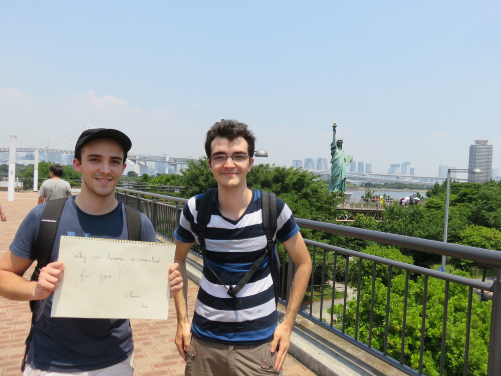 「僕たちはパリから来ました。僕(写真右側)は都内に住んでいるので、この辺りには何度か来たことがあります。僕は茨城県つくばにある化学関連の会社で研究員のインターンをしています。