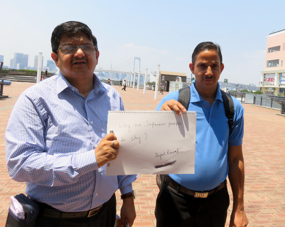 今回が私たちにとって初めての日本です。私たちは東京ビッグサイトで開かれていた「ギフテックス(GIFTEX)」という雑貨・小物関連の展示会に参加するために、5日間日本に滞在しています。インドの製品を紹介するために展示会に行きました。私たちはインド政府で仕事をしています。