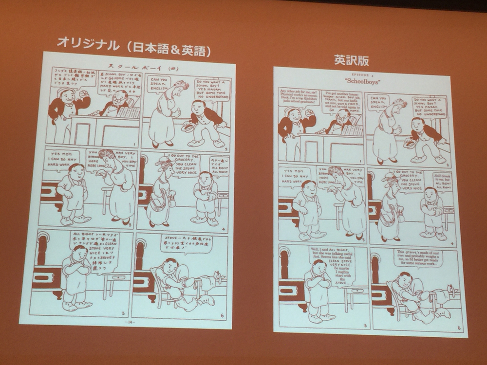 講演はいよいよ後半へ。日本漫画の源を探るべく、ヘンリー木山義喬(きやま よしたか)という一人の日本人を紹介しました。