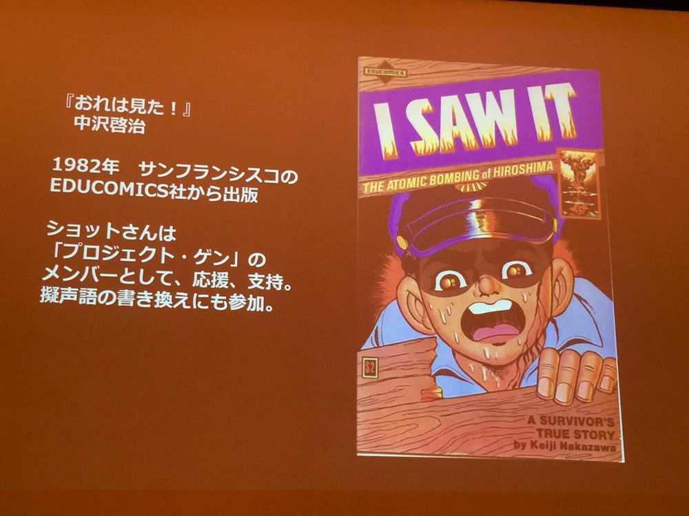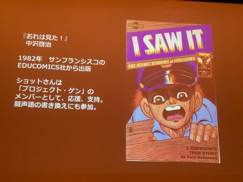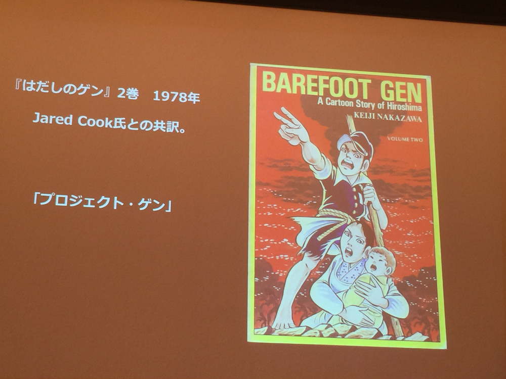 その後ボランティア団体“プロジェクト・ゲン”の活動に翻訳者として参加し『はだしのゲン』(”BAREFOOT GEN”)第2巻を翻訳。その後、短編『おれは見た』(”I SAW IT”)のアメリカ版制作を担当しました。
