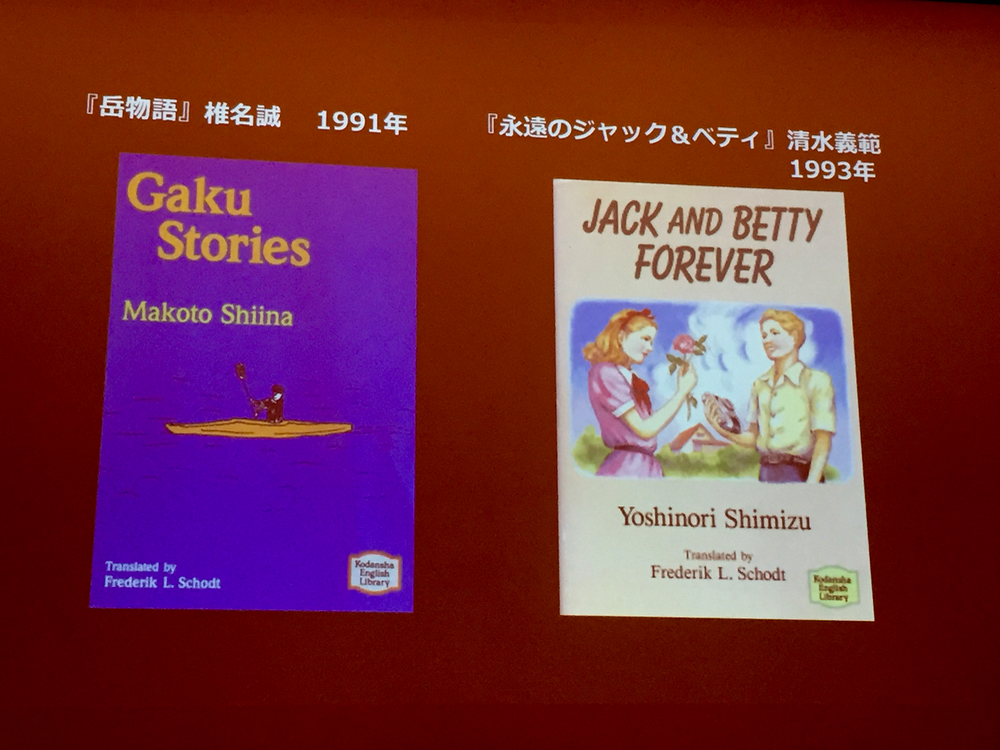 ショット氏のこれまでの足跡を辿った後、先述の”Manga! Manga! The World of Japanese Comics”を出版した経緯を語りました。