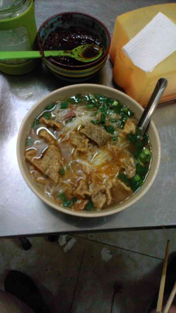 ベトナム料理と言えば「フォー」が定番ですが、ハノイでは「ブン」の店の方が多く、街中の朝ごはんとして一番人気があります。「フォー」と「ブン」は同じ米粉の麺ですが、「ブン」は微発酵させて茹でた丸麺で、食味はもちっとした感じです。