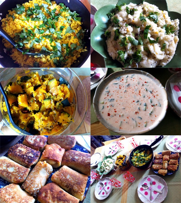 すでにお伝えした通り、インド料理のバラエティはものすごく豊富です。他のどんな国もインド料理に匹敵するようなバラエティは持っていないだろうと思います。私のクラスでは、生徒さんは何かしら新しいことを学んで帰ります。生徒さんは新しいことを体験したいと思い、そして新しい味を覚えて帰る。ちょうど今日、生徒さんの一人が「今日初めて ポハ(お米をつぶして乾燥させたもの)を食べました」と言っていました。彼女はそれがインド料理だと思っていなかったんですね。嬉しいです!ポハを食べるのは彼女にとって初めての体験だったのですから。またもう一人は「今日のメニューは驚きです!カレーもナンも無いインド料理なんて、典型的なインド料理とは全然違う」。そうなんです、カレー無し、ナン無し。これだって立派なインド料理なんです。