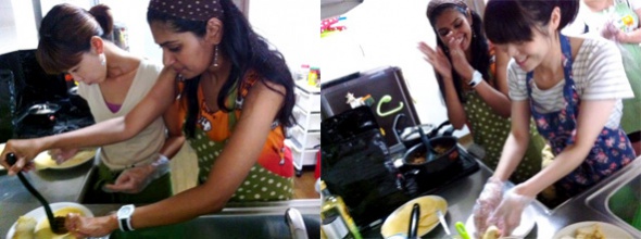 クラスのレシピを決めるときは、地域ごとに分けて考えます。いつもクラスごとにテーマを決めていて、ある時にはインドのビーチリゾートであるゴア地方の料理をやりました。例えば 魚のフライ、エビのカレーなどなど。ある時にはボンベイの全く別の顔をお見せしようと思い、ボンベイ屋台料理をやりました. これはカレーのような, いわゆる典型的なインド料理とは全く違うものです. また、いろんな料理を入れた小さな器を一つのお皿に載せて提供するターリー(日本でいうところの定食)を作ったこともありました。これは グジャラート料理(比較的スパイス控えめで、甘酸っぱい、甘辛い味付けが多い)です。そして私たちのコミュニティ – 「イースト・インディアン・コミュニティ」 – このコミュニティには独特のレシピがあり、これをテーマにしたこともあります。