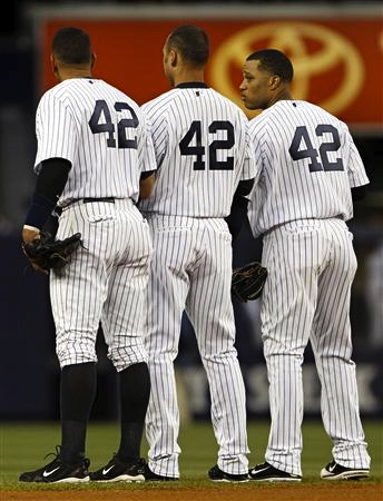 唯一NYヤンキースのマリアーノ・リベラ投手だけが現在、背番号42を付けていますが、彼の引退と共にヤンキースでも「42」は永久欠番となりますね・・・となると今シーズンの終わりには・・・!
