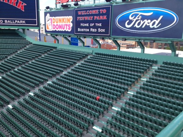 ここはかつて最後の四割打者、テッド・ウィリアムズという選手がホームランボールをここまで打ち放った場所なんですって!だからここだけ赤いのでございます。