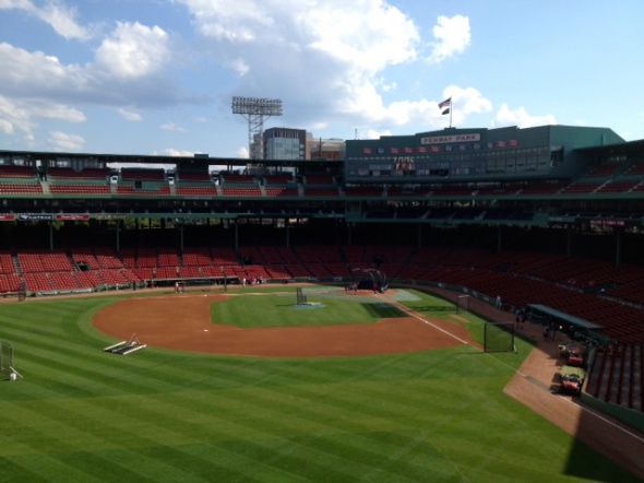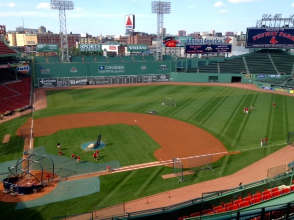 球場に着いたのが試合開始の3時間前、ホームのレッドソックスのチームが練習を始めたところでした。