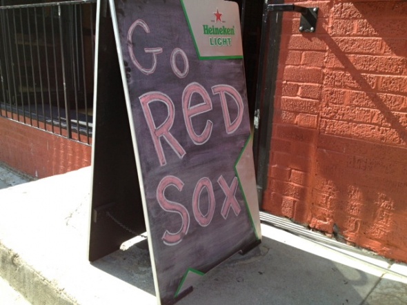 今日も試合があるので、近くのバーには「GO RED SOX」と書かれた看板が。