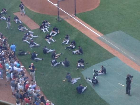 交代でビジターのヤンキースの練習が始まりました。