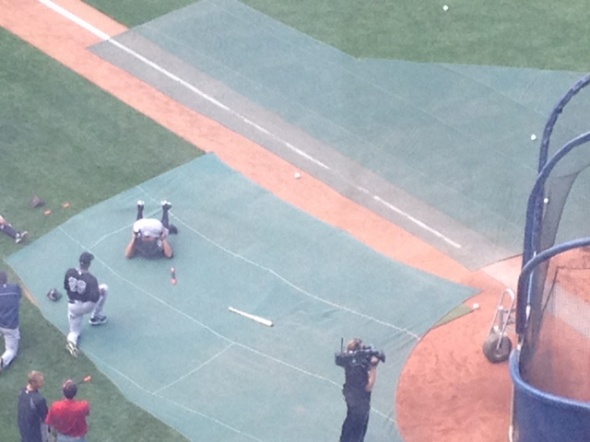 このデイヴィッドが、ずーっとA-Rodたちと話しこんでいました(ちなみにパピーは今年レッドソックスから宿敵ヤンキースのへの移籍が噂されましたが、ヤンキース仲間たちと話しこむということは。。。来年こそは移籍か!?)。とにかく人望が厚くボストンでは大人気のカリスマパピー。ヤンキースで言えばあのキャプテン、ジータのポジション!