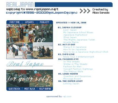 2000年当時の「Real Japan」トップページ *クリックで拡大