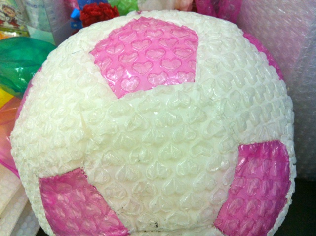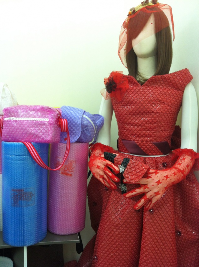 2005年、愛知県で「愛・地球博」が行われました。”自然の叡智”がテーマのこの万博に、名古屋に本社を置き、『くうきとともだち』をスローガンに燃やしても無害のプチプチ®を製造・販売してきた当社が、プチプチ®で作ったものを出展させていただくことになりました。