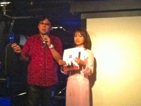 写真左:Love Asia Vol.18でのGYPSY QUEENのパフォーマンス 写真右:GYPSY QUEENリーダーのAkiさんと共にライブを進行