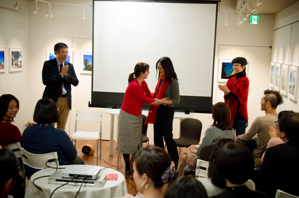 写真右端:ディアス実和子さん(TWFF) 写真左端:西村修さん(銀座ソーシャル映画祭 企画・運営)