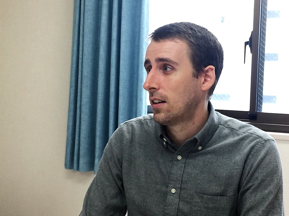 日本には約5年住んでいます。日本語を学ぶために日本に来ました。日本語の勉強自体は、アメリカで2年、日本で5年、計7年しています。僕の父も1956年、彼が3歳の頃に日本に住んでいました。そして10年前に父は仕事の関係で再び来日することになったため、日本語を学び始めました。そんな父がある日僕に、何か他の言語を学ぶことを勧めました。それで僕は、日本語が面白そうだと考えました。