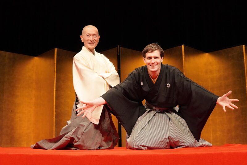 竜楽:今から約20年前、東京農工大の先生でブルガリア人のエレオノラ・ヨフコバさん(現在は富山大学教授)に頼まれて、日本に来たばかりの若者たちに向けて日本語で落語を行ったことが、私の海外公演活動のルーツです。落語で話される日本語は、番頭や丁稚、職人、お侍やお坊さんなど、職業や地位によって変わるので、外国人にとって理解することがとても難しい。それでも私が日本語で一席演じたら、彼らは笑ったのです。私は「日本語でも落語は海外の人たちに楽しんでもらえる」と確信しました。それは落語が本来”噺家の動きや表情を見て楽しむ演芸”だということもあるのでしょう。