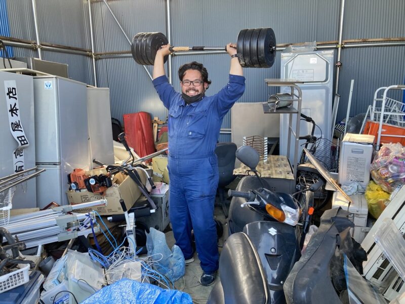 ラファエルさんが回収した廃品の保管倉庫。その中にはバーベルも!
