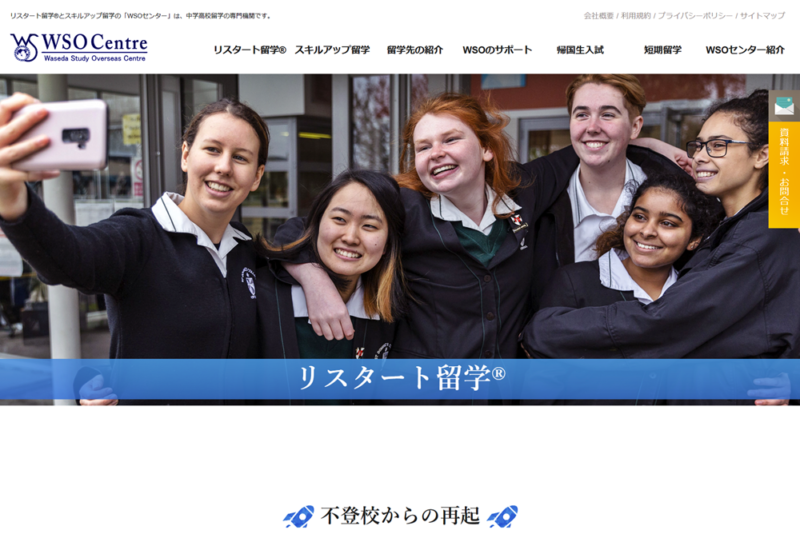 WSOセンターさんの根幹を成す”リスタート留学®”紹介ページ。不登校からの再起に対して留学が効果を発揮する理由や、その意義が綴られている。※クリックすると当ページに遷移します。